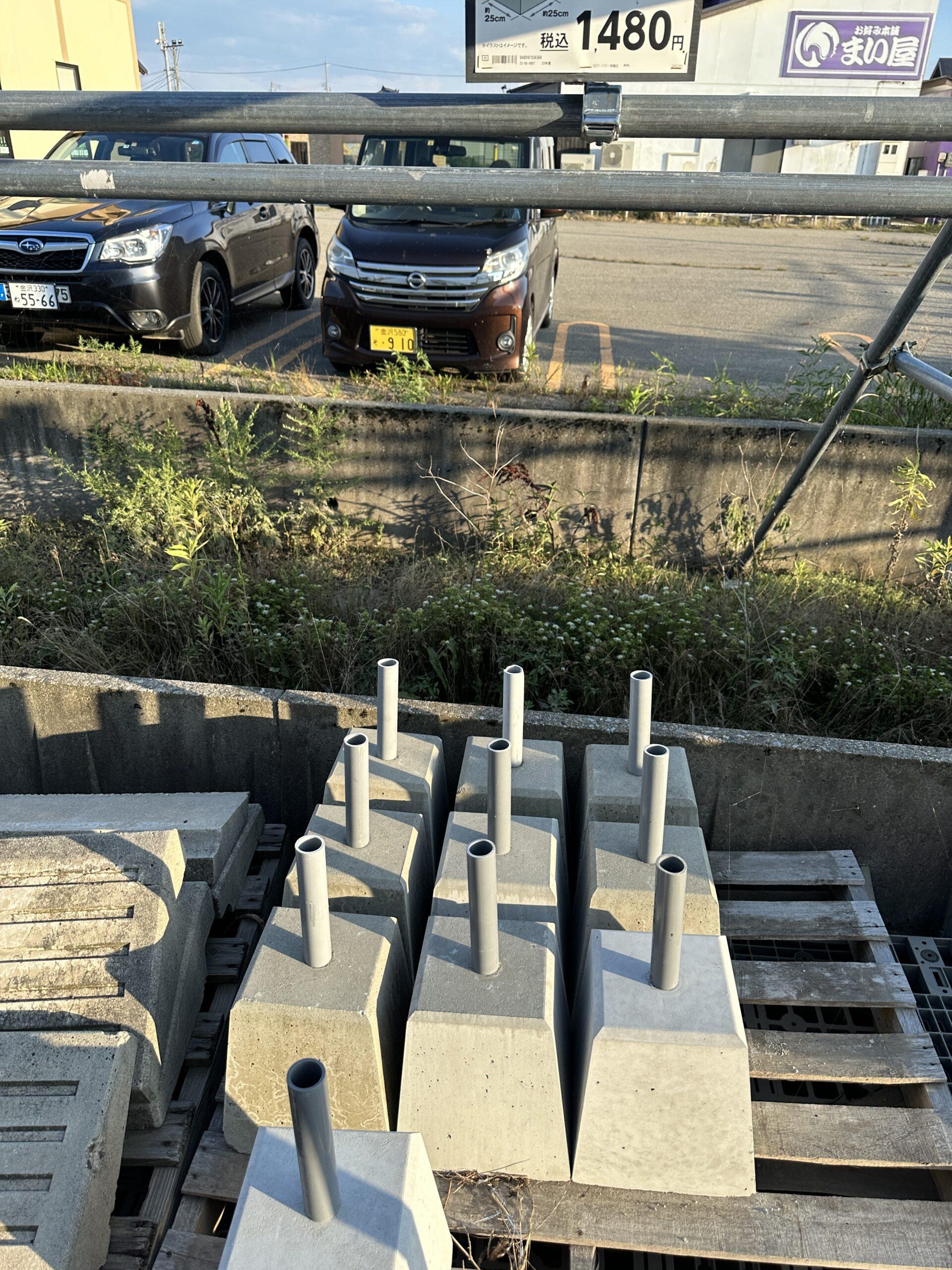 津幡駅前2号館のために のぼりの旗用を 10個購入 このコンクリートが重い笑 体力ついた笑 スタハ 辰村 PS 私は のぼり …
