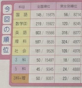 【 中3 全国模試 5教科 全国119位(18389人中) 偏差値70 】コメント (0)