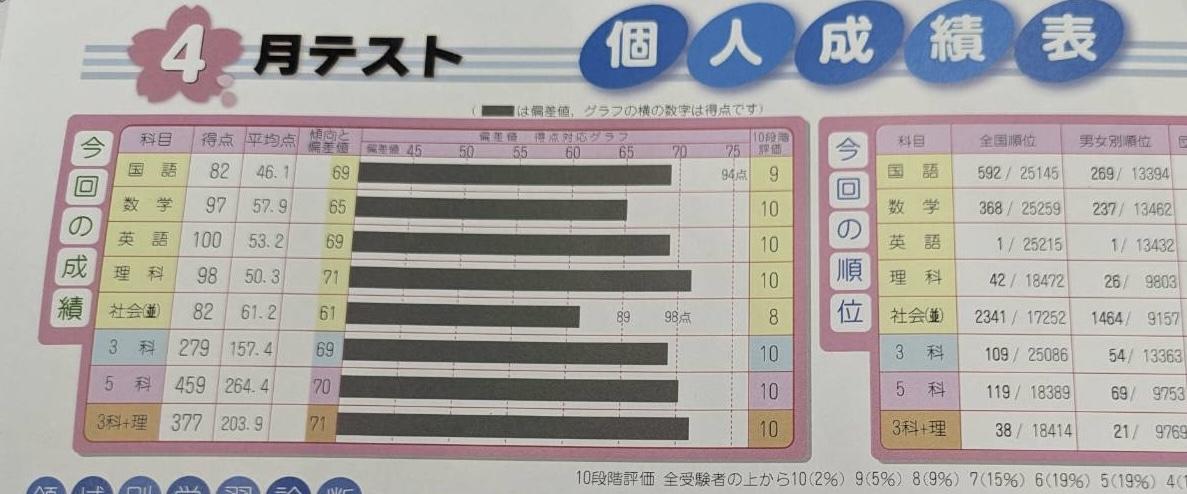 【 全国模試 中1】【 全国45位(5教科) 偏差値69 スタハ 】コメント (0)