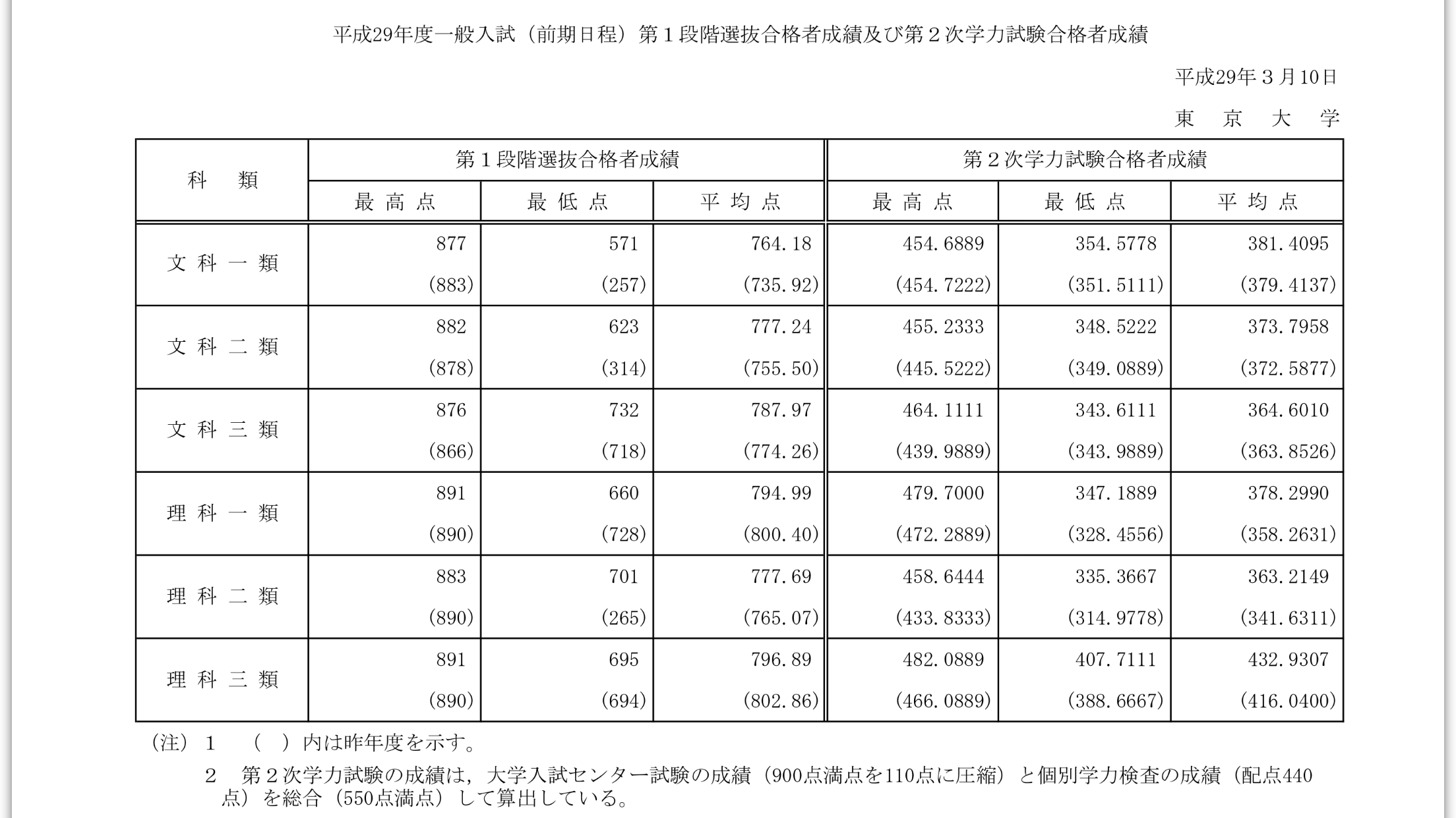 東大 合格最高点 最低点 平均点 一覧表。 スタハ たつむら [blogranking1]