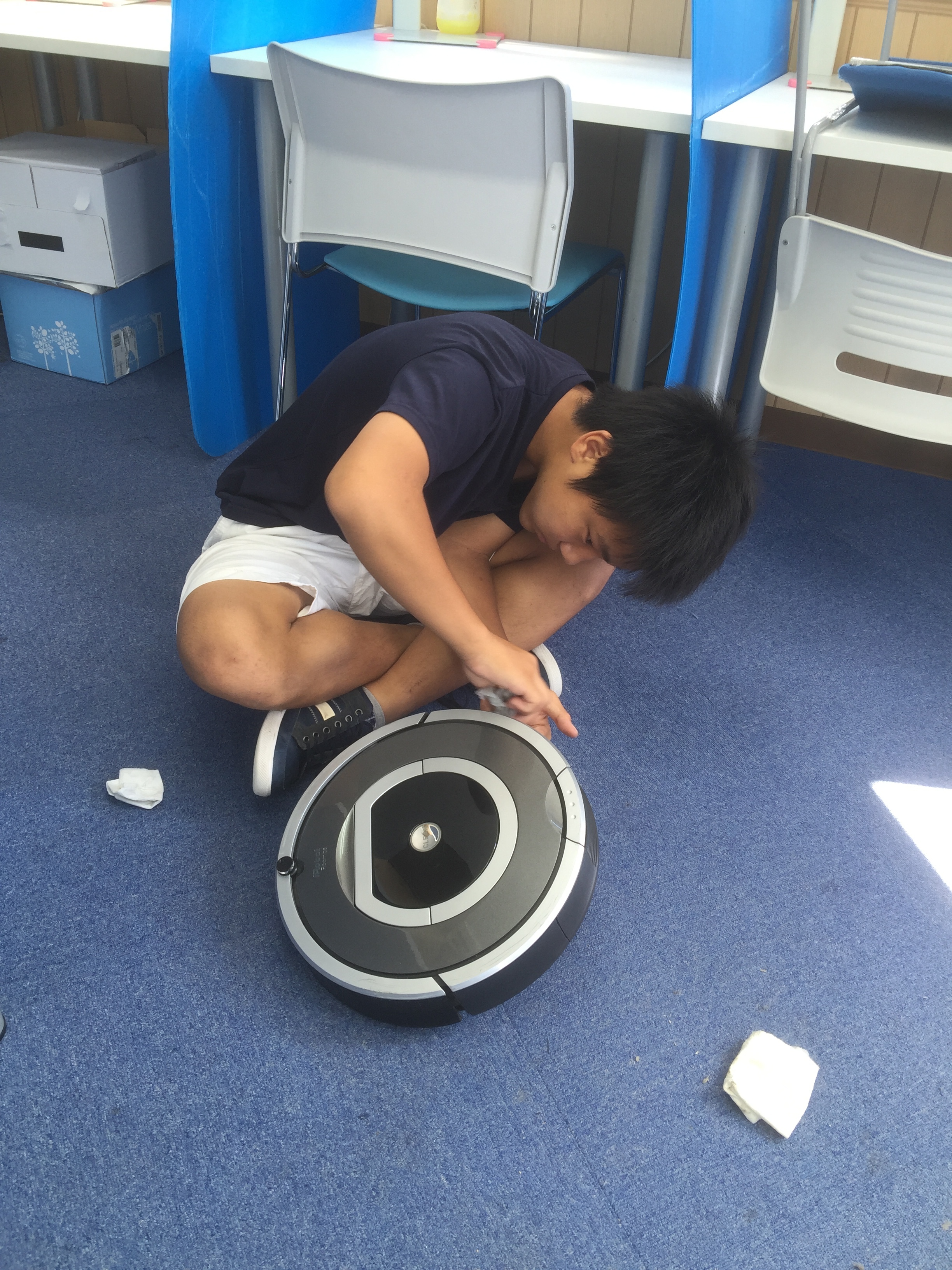 いつも自動で 90分間 教室中を掃除してくれるルンバ君(笑) 本当に感謝感謝だ(*^。^*) お風呂も入れてあげたいし 壊れた部品も交換してあげたいということで 寺ちゃんと お掃除 修理 メン …