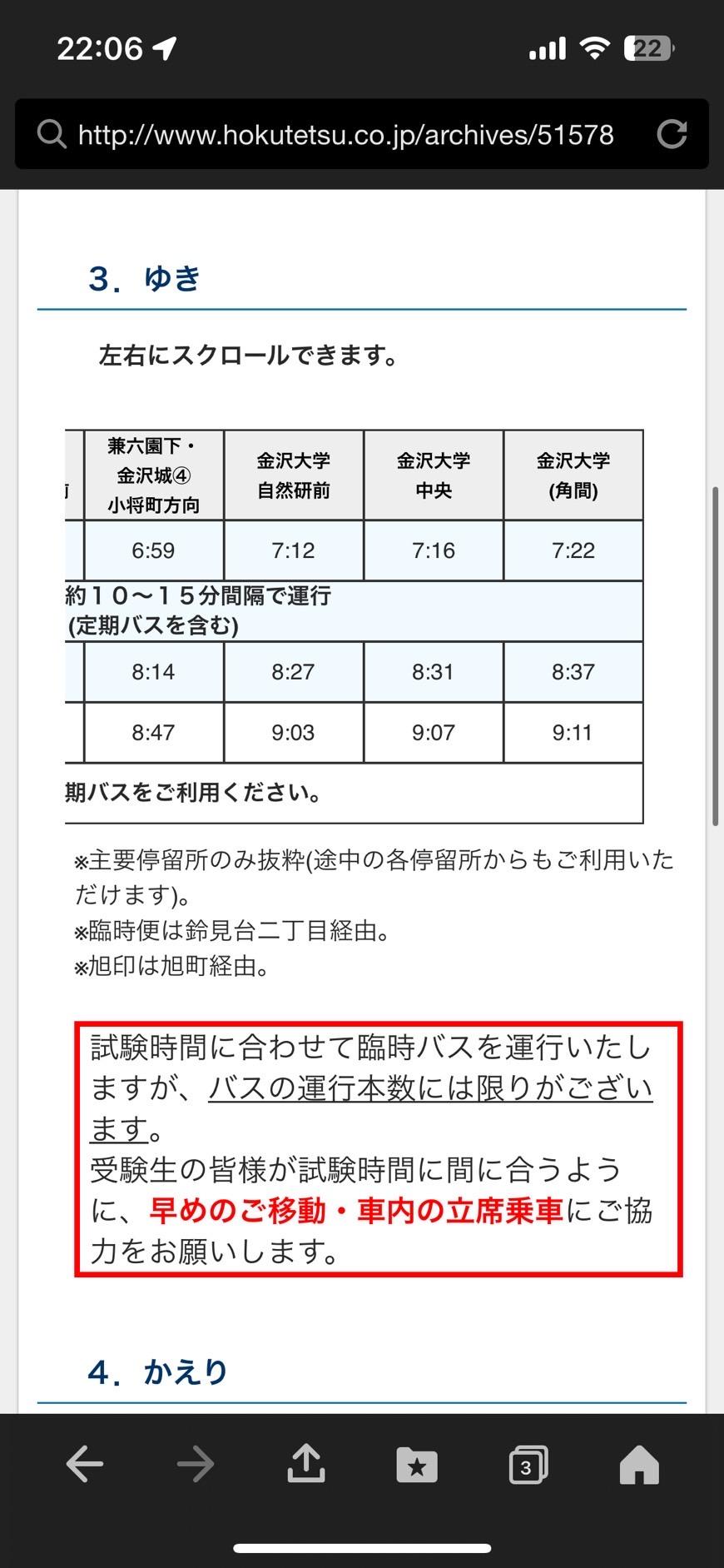 金沢駅から 金沢大学の試験会場に向かうバスの時刻表 多くの受験生がこのバスに乗ってやってきます 頑張れ受験生 スタハ 辰村 &n …