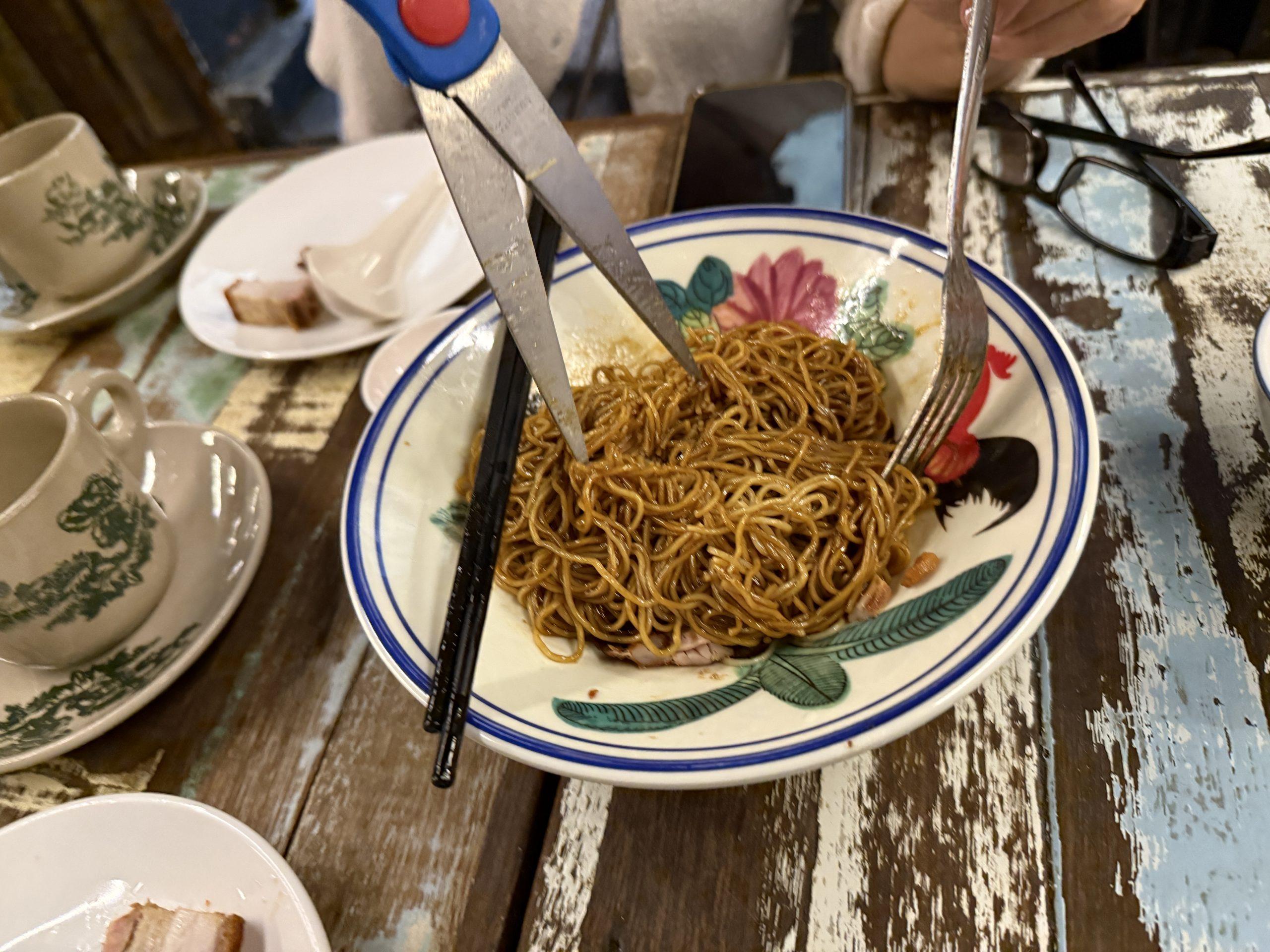 焼きそばを ハサミで。 マレーシアにて スタハ 辰村 PS なるほど
