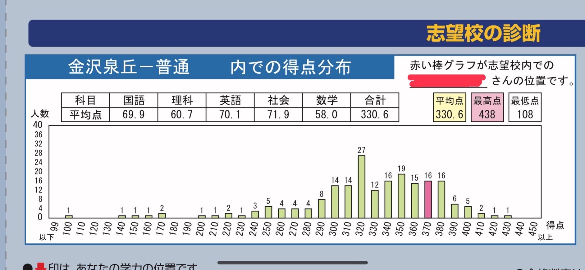 【 速報 】 金沢泉丘 得点分布 第1回 石川県総合模試 5教科平均330.6点 スタハ 辰村