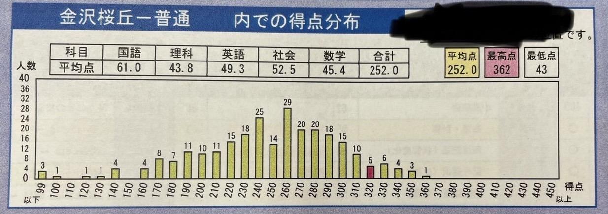 【 速報 】 金沢桜丘 得点分布 石川県総合模試 第1回 5教科平均252点 スタハ 辰村 &nbs …