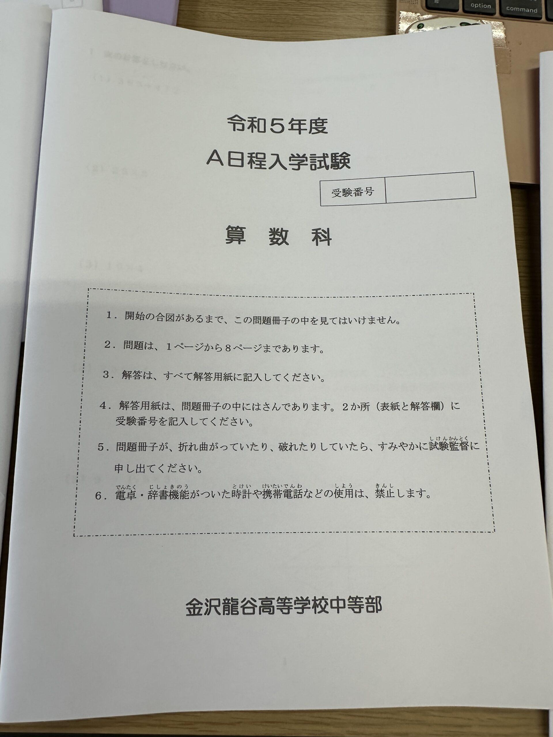 金沢龍谷中学校 算数の問題 基本的な問題が多いが 小学校のカラーテストよりは難しい しっかり準備してほしい スタハ 辰村 PS 小学校の勉強は 大事。 &n …