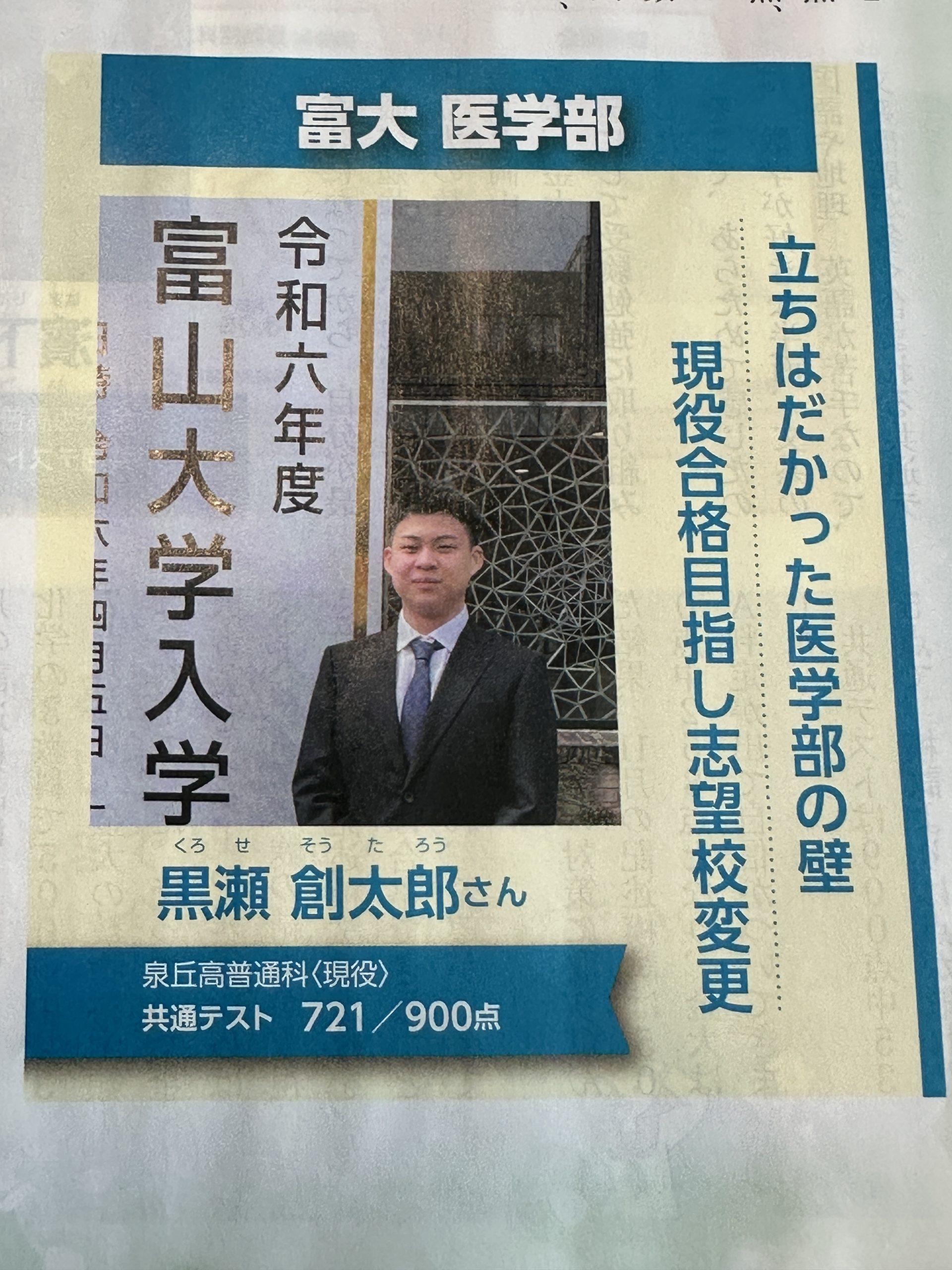【 アクタス10月号 黒瀬 創太郎くん(スタハ生) 富山大学医学部合格 掲載されました 読んでくださいー 】コメント (0)