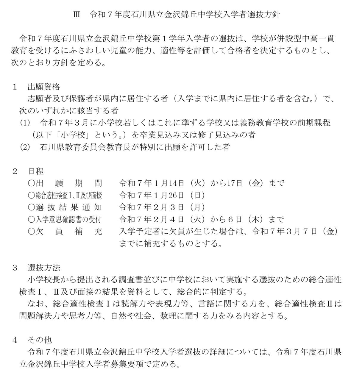 【 金沢錦丘中学校 来年1月26日(日)に入試 2025年 】コメント (0)