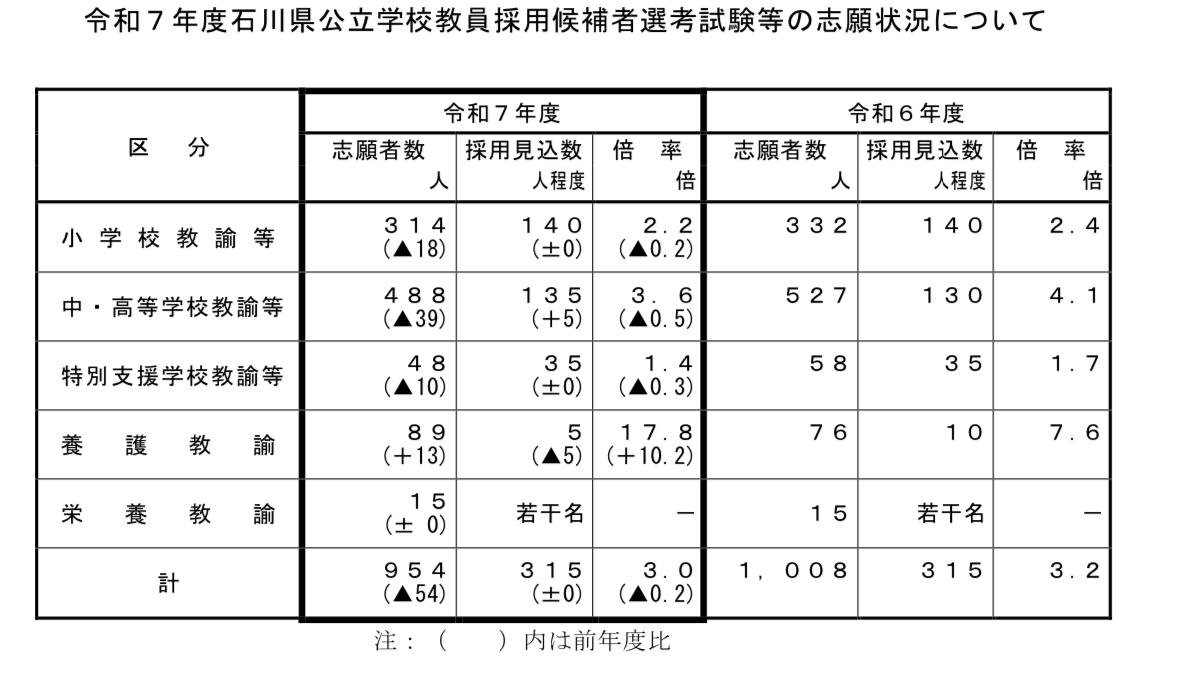 石川県 教員採用試験 志願者減っている 大学3年の志願者は増えている スタハ 辰村 PS もちろん 大学3年の志願者は ひとまず 受けておこうという人も入ると思うので 全て …