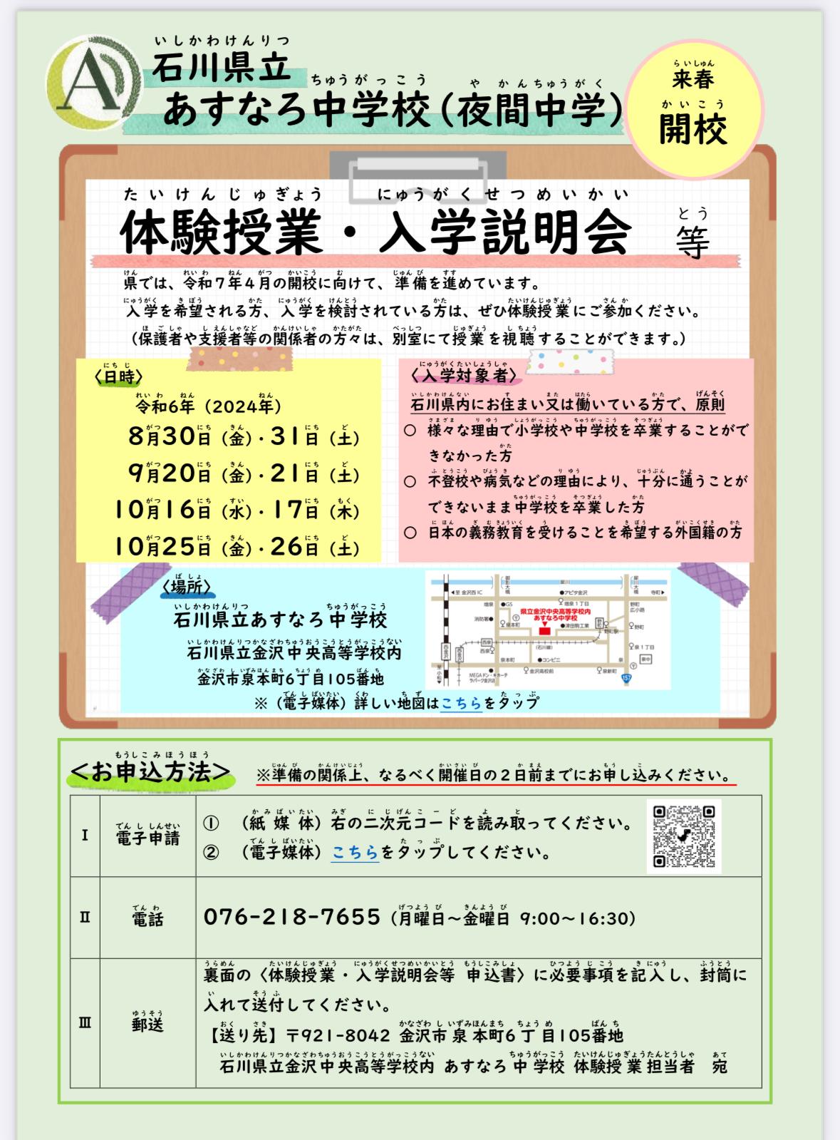 【 石川県立あすなろ中学校の体験授業 入学説明会 】コメント (0)