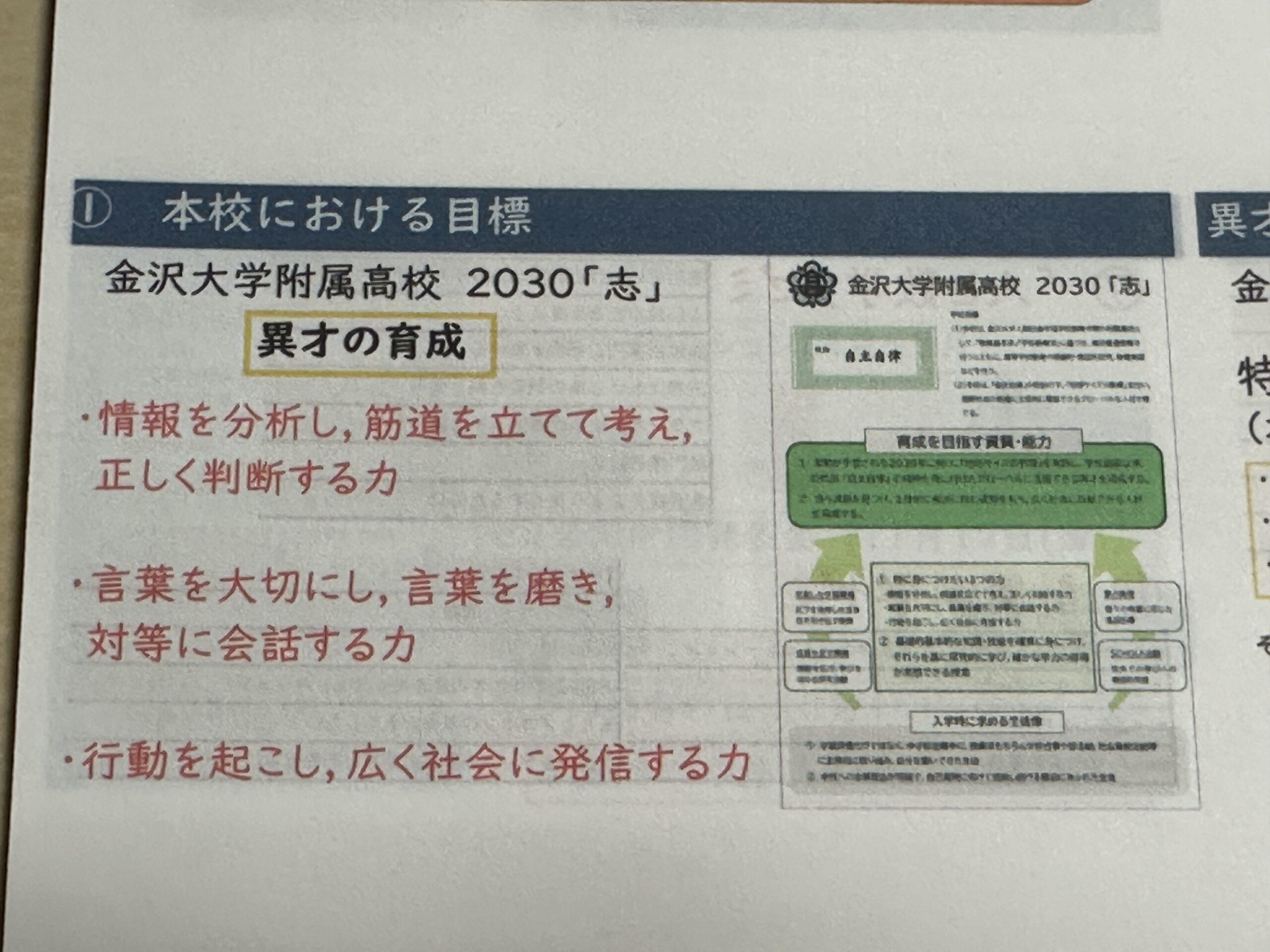 金沢大学附属高校 「異才を育てる」がテーマ 本当にそうですね それこそ経営者の卵 スタハ 辰村 PS リーダーを育て …