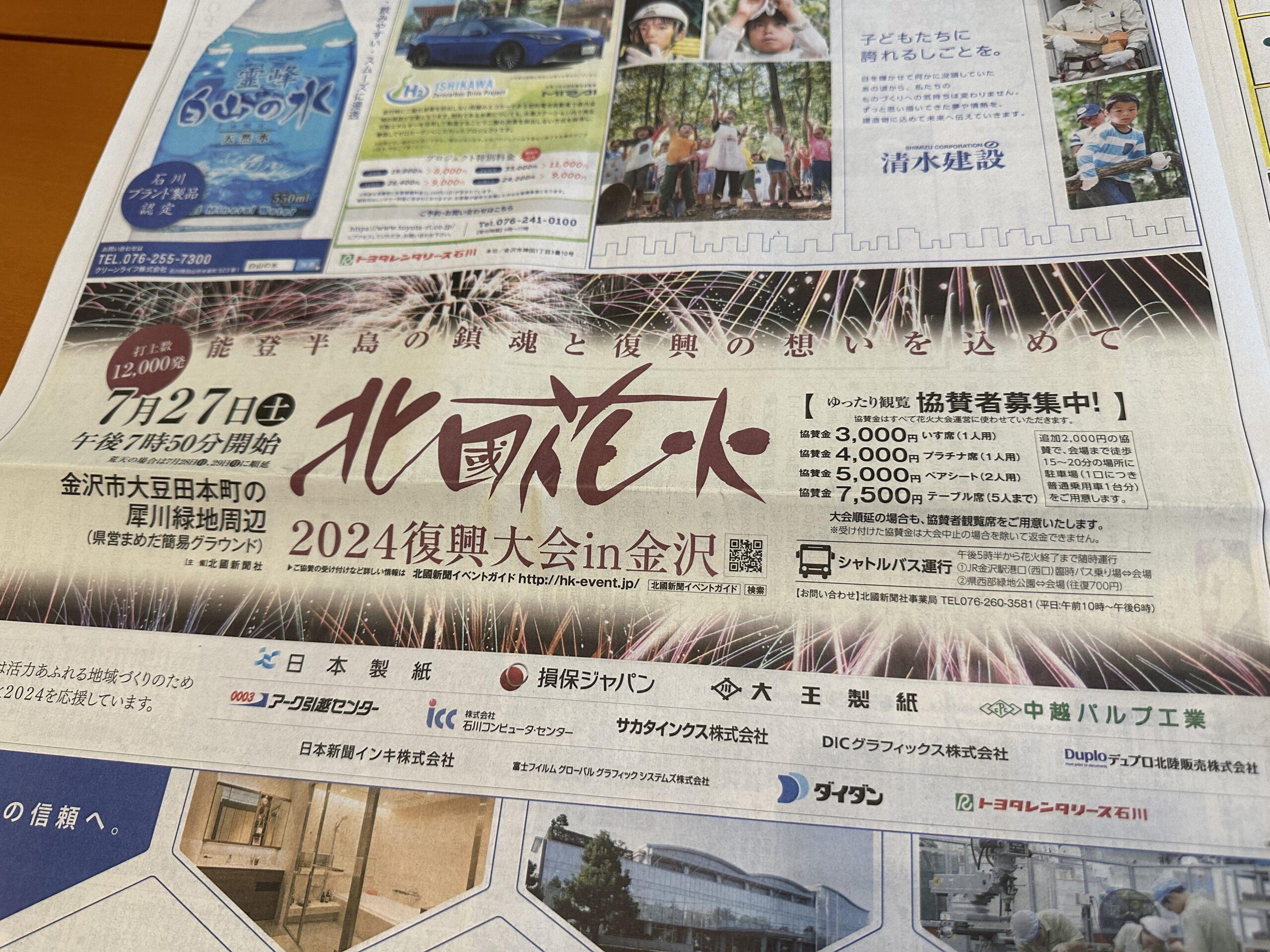 北國花火大会 7月27日(土)午後7時50分より スタハはテーブル席を15人分申し込みました笑 能登の震災で スタハに避難 …